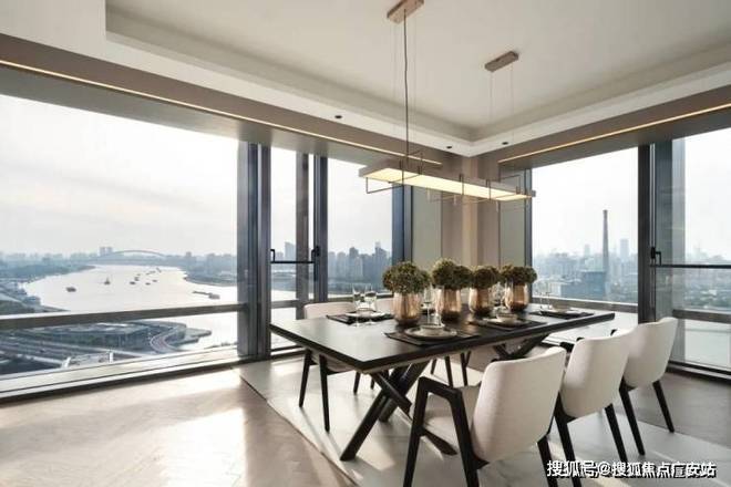 在厨房、在餐厅和客厅,还有在书房,你看到的景色如此多元。可以是阳光映射下的黄浦江美景、可以是壮丽的南浦大桥、可以是造型独特,宛若飞碟般的梅赛德斯奔驰文化中心,还可以是上海地标陆家嘴三件套。